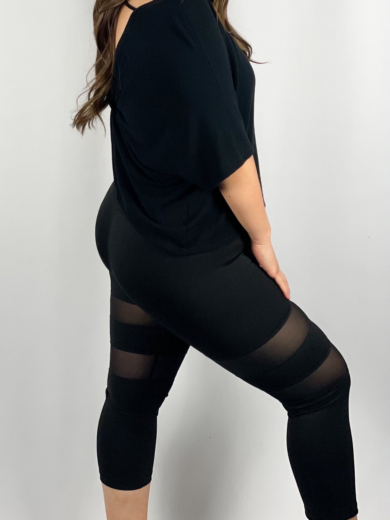 Stay cool as your workout heats up in our High waist capri leggings with sheer details along the legs, made from a thick super stretchy material made to hold you it.