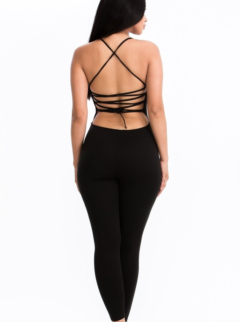 Sexy open back bodycon jumpsuit.